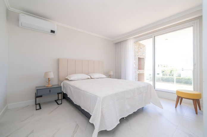 2 Dormitorios, 2 baños, dormitorio principal en suite, equipados con amplios placares de piso a techo. Losa radiante eléctrica individual por ambiente y doble ventana.
